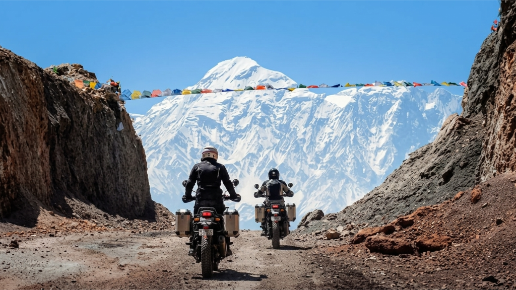 This journey is designed for the rider who seeks more than just miles. Starting from the bustling streets of Delhi, we carve our way through the plains of Uttar Pradesh to enter Nepal via the Sonauli border. From there, the terrain transforms as we climb into the lower Mustang region.